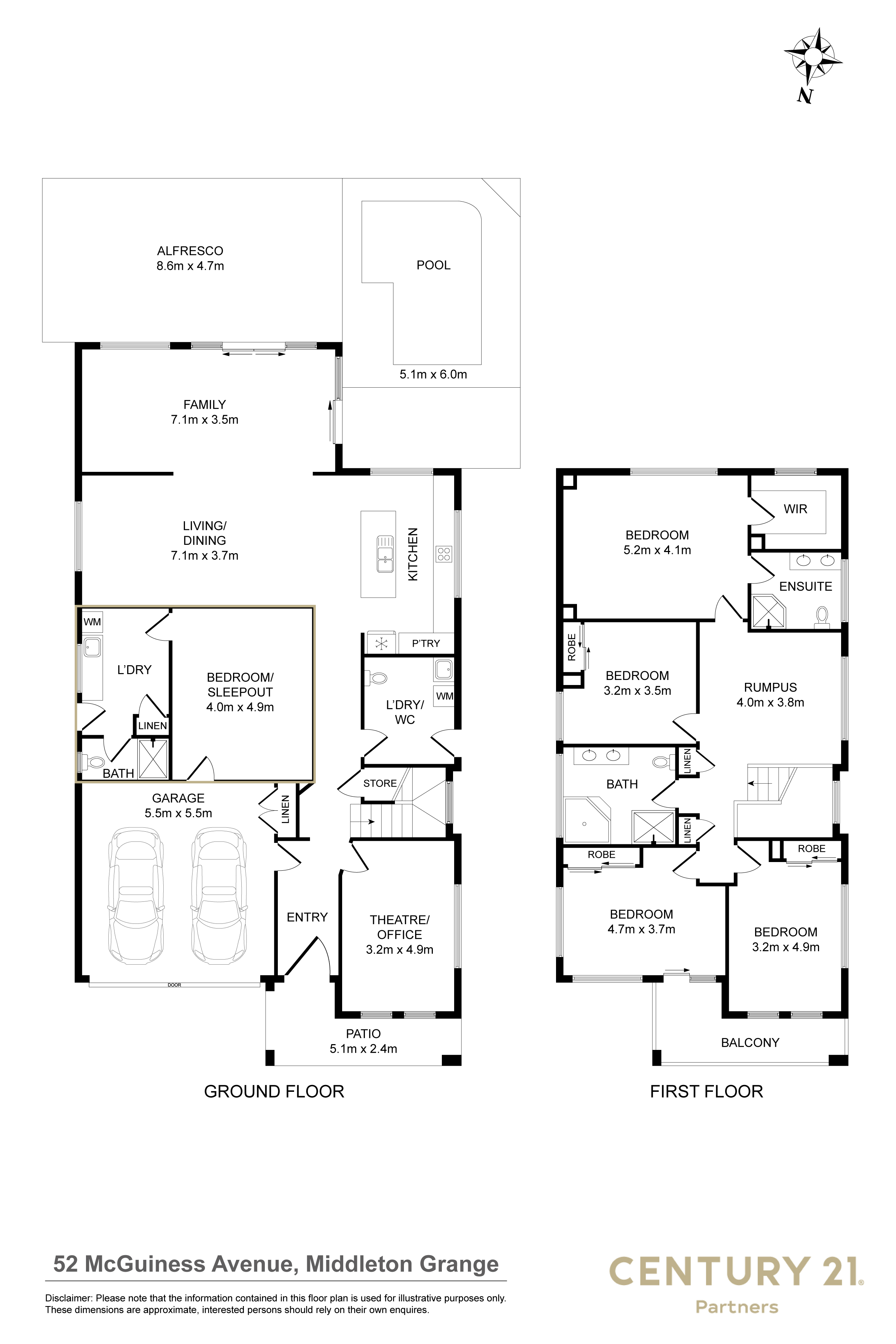 Five spacious bedrooms; three of which with built-in wardrobesMaster suite complete with walk-in robe and ensuite featuring double vanity and floor-to-ceiling tilesContemporary kitchen with stone overhanging island bench, ample storage complimented with pendant lightingSpacious combined living and dining roomOpen-plan family areaTheatre / Office RoomUpstairs rumpus spaceModern bathrooms throughout with floor to ceiling tiles and dual basinsOutdoor entertaining area with covered alfresco space overlooking sparkling inground pool surrounded by manicured gardens Large internal laundry with additional toiletRemote double lock-up garage with internal access Ducted air-conditioning and ducted vacuum throughoutSecurity cameras and automated shutters